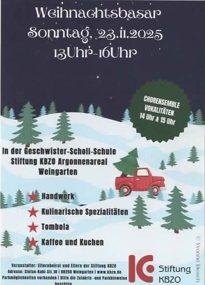 Am 23.11.2025 in der KBZO Stiftung, Stefan-Rahl-Str. 10, 88250 Weingarten, von 13-16 Uhr.